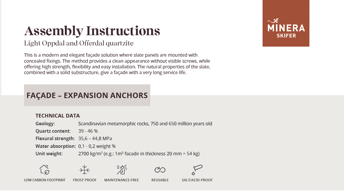 concealed fixing, expansion anchors, façade fixing, façade installation, façade slate, installation, installation directions, Installation guide, Installation instructions, installation manual, laying guide, laying instructions, screwed façade, slate façade